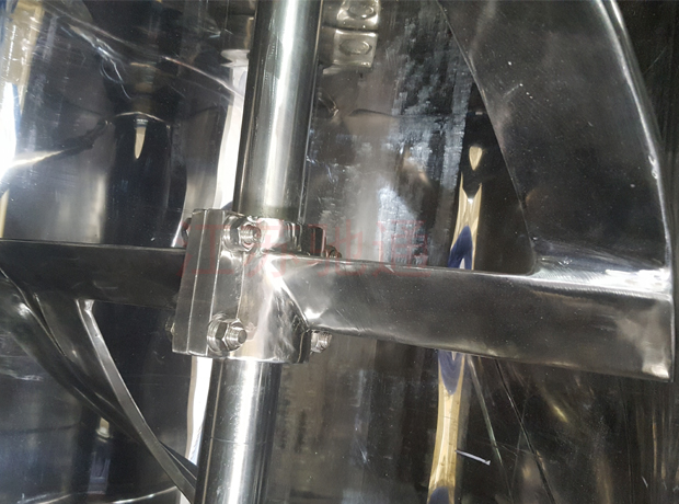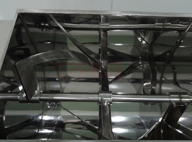 本機(jī)與物料接觸處均采用不銹鋼制造,槳葉與桶身間隙小,混合無死角,攪料軸兩端設(shè)有密封裝置,能防止物料外瀉。